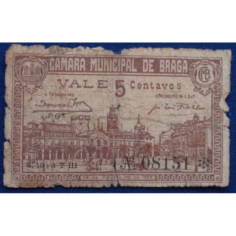 Braga, Câmara Municipal - 5 Centavos - 1920